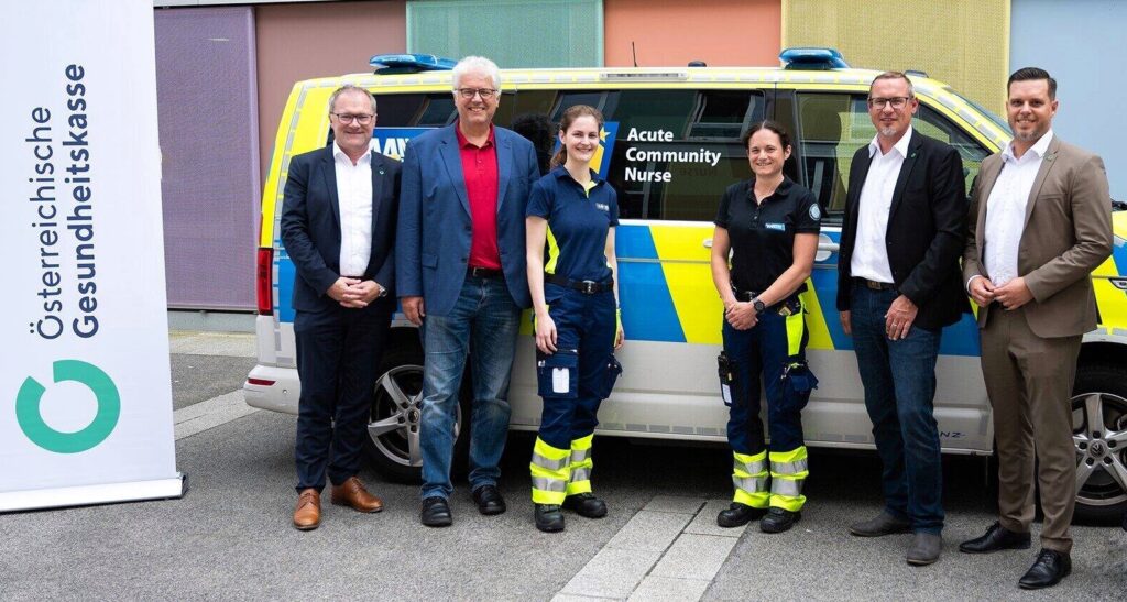 Günter Steindl (ÖGK Landesstellenleiter-Stv.), Andreas Huss (ÖGK Obmann), Bastiane Pinz (ACN), Stephanie Horschitzka-Doppler (ACN), Robert Leitner (ÖGK Vorsitzender Landesstellenausschuss), Thomas Ries (ÖGK Landesstellenleiter)